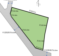 西側 市道幅員約6.2m 接道間口約10.4m 南西側 市道幅員約8.0m 接道間口約65.0m  南側 市道幅員約6.0m接道間口約12.0m