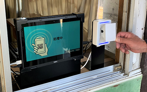 6. 개찰구를 통과합니다. 승차권의 2차원 코드 면을 리더기에 대면 개찰구를 통과할 수 있습니다. 사용한 종이 승차권은 출구 역에 있는 "승차권 회수함(乗車券回収箱)"에 넣어 주세요.