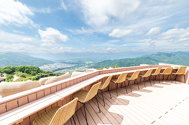 雄大な景色に包まれながら、ドリンクや軽食を片手に、あなただけの特別なひとときをお過ごしください。アクセス 山頂駅から徒歩5分