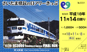 秩父鉄道では、11月14日のさいたま県民の日を記念して、秩父鉄道全線を何度でも自由に乗り降りができる「さいたま県民の日フリーきっぷ」を発売いたします。